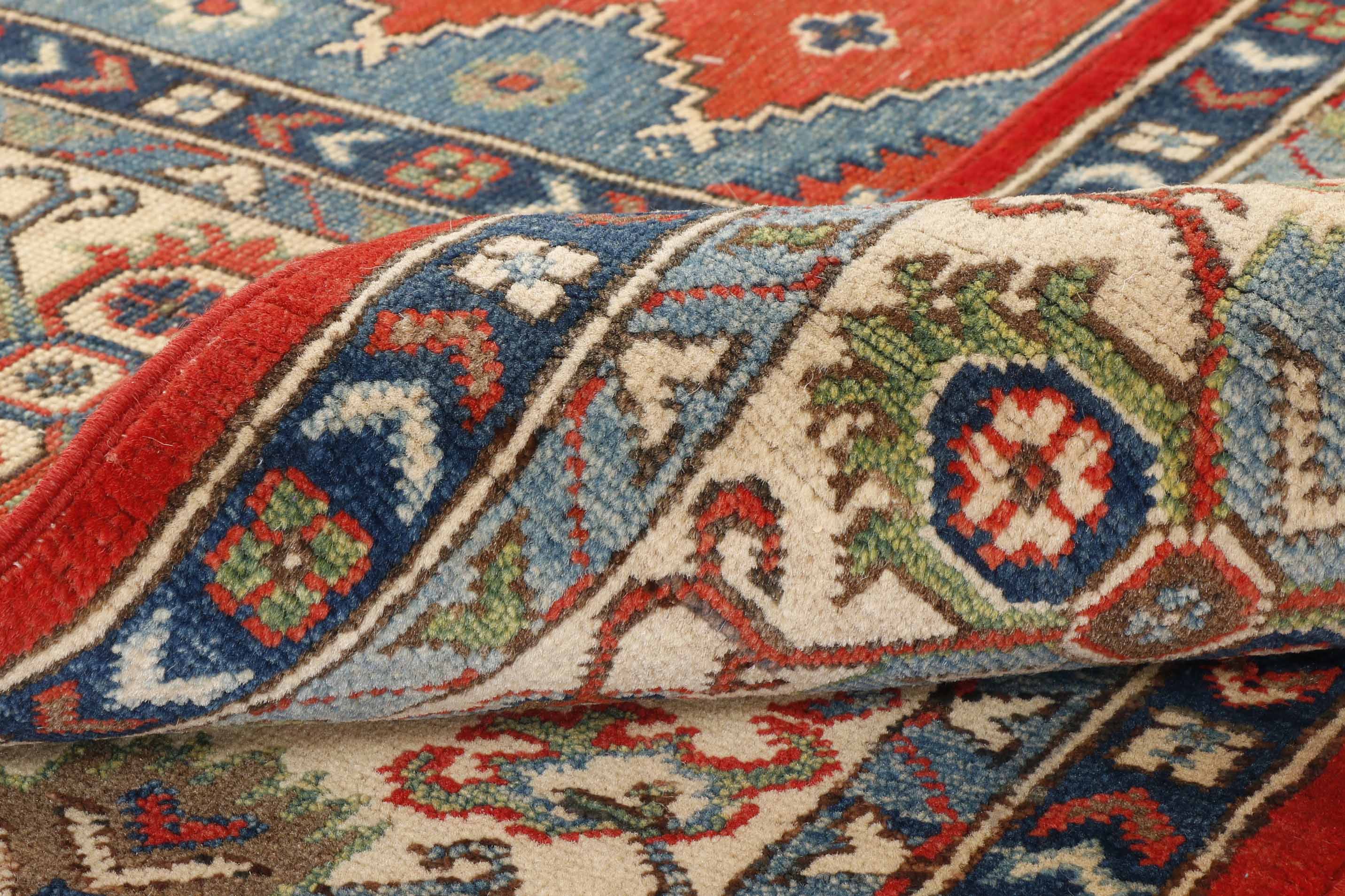 We are pleased to offer these commercial Afghan Kazaks as an excellent option for the buyer considering pieces for rental properties or homes where the buyer may be considering shorter-term solutions. They are hand-knottedas you would expect; they are produced in commercial environments using vegetable-dyed wool that is commercially produced. As a result, they need to be more finely knotted and could be slightly coarser than we would generally sell. However, they are incredibly valuable for hand-knotted pieces and may be the perfect choice for price-sensitive buyers. We like the vibrant colours and traditional nature of the designs, and you would need help to buy commercially produced machine-made pieces at highly competitive prices, so they are a great buy.