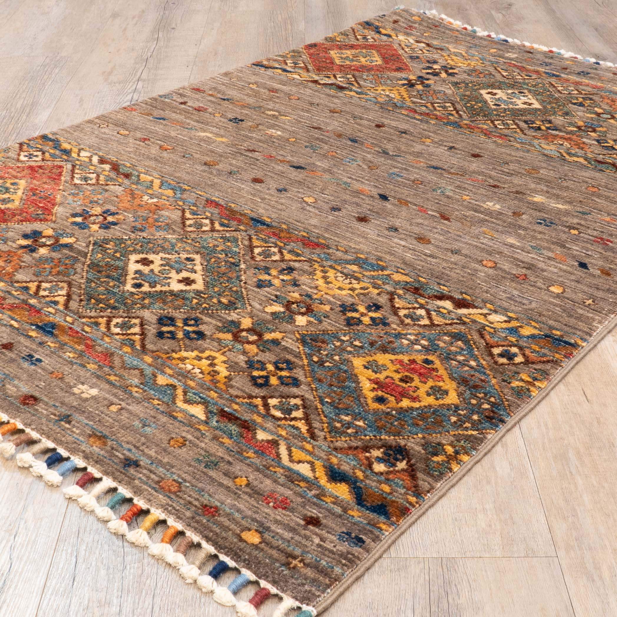 This authentic Samarkand rug is handwoven by master artisans in north-west Afghanistan, where traditional weaving techniques have been passed down through generations within established cottage communities. Constructed from hand-spun, vegetable-dyed wool, it offers exceptional durability and longevity. The design thoughtfully bridges heritage and contemporary aesthetics, featuring a modern colour palette that respects traditional patterns. Equally at home in a living room, bedroom, or study, this versatile piece brings genuine craftsmanship and timeless appeal to any space.