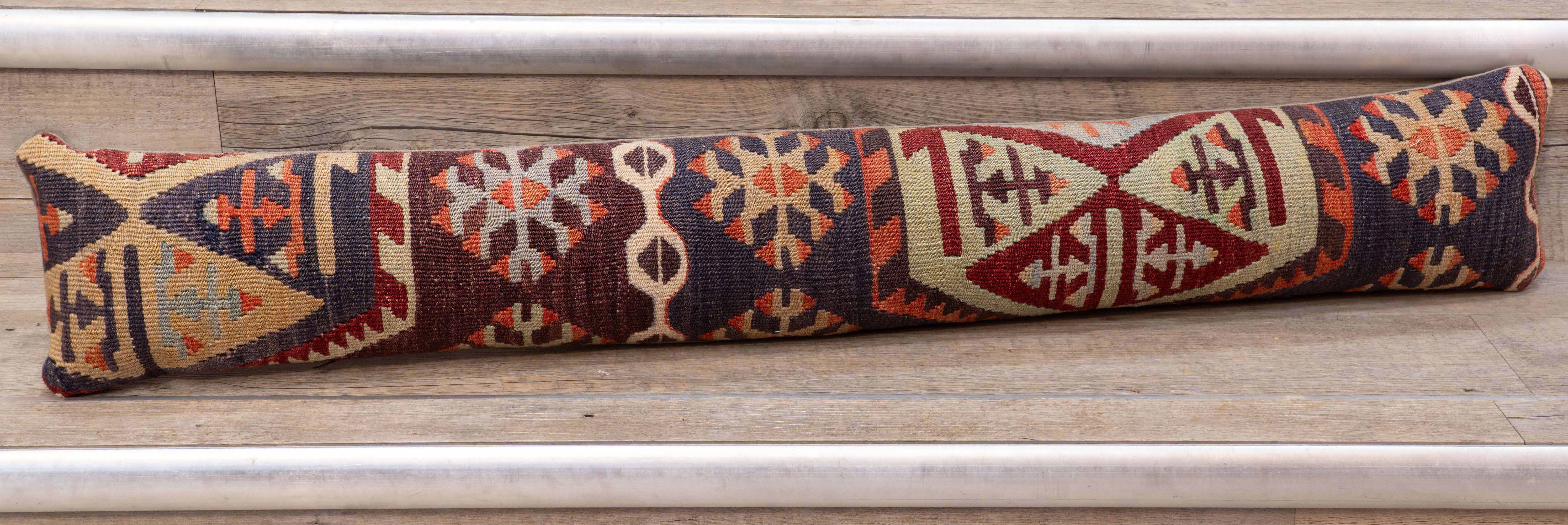 We are fortunate to have these draught excluders on the website; the old kilims are becoming harder to find and quite desirable. This lovely draught excluder is made from a salvaged piece of Turkish Kilim. It is single-faced, with a faux-suede/linen backing and fibre fill. Each draught excluder is unique and not repeatable.  When buying online, the company's provenance and the product are worth considering. We are a family business with over 60 years of experience selling rugs. We have an unrivalled reputation and pride ourselves on our level of customer service. We welcome visits to the Tewkesbury shop. Alternatively,...