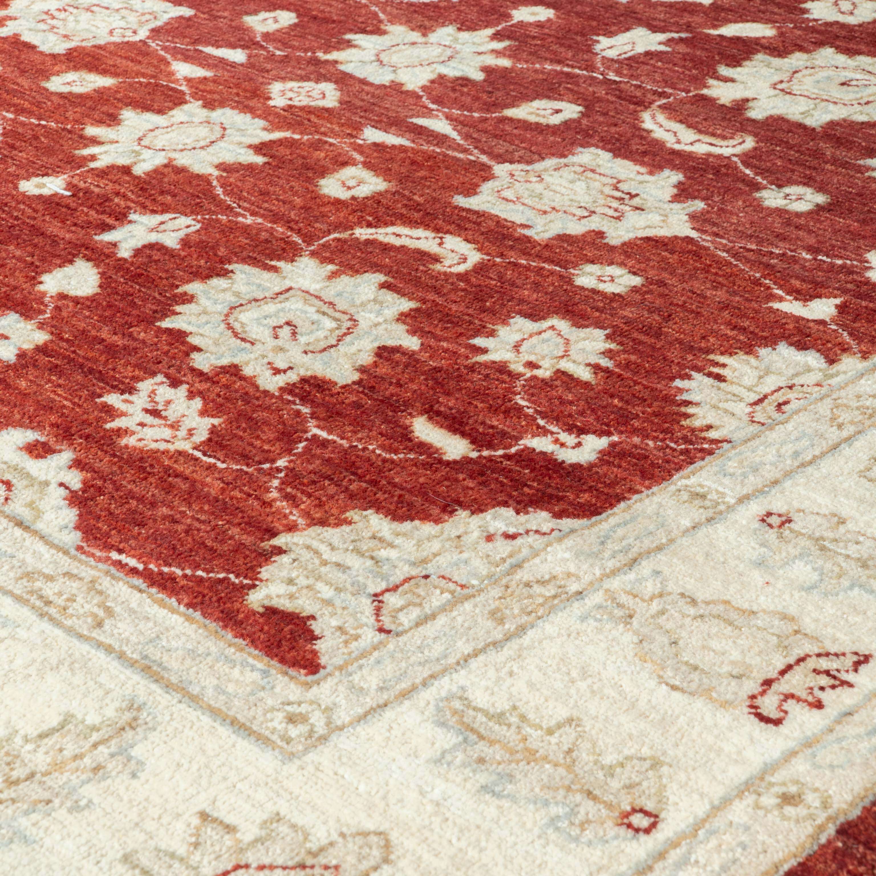 This exquisite, handmade Afghan Ziegler rug features a captivating, rich red ground adorned with intricate floral motifs and framed by an elegant cream border. The distinctive square format offers a refined alternative to conventional rectangular designs, making it an exceptional choice for creating visual interest in any interior space. Crafted with traditional techniques by skilled artisans, each piece reflects authentic heritage craftsmanship and timeless elegance. The harmonious colour palette and delicate botanical patterns bring warmth and sophistication to living areas, studies, or bedrooms.