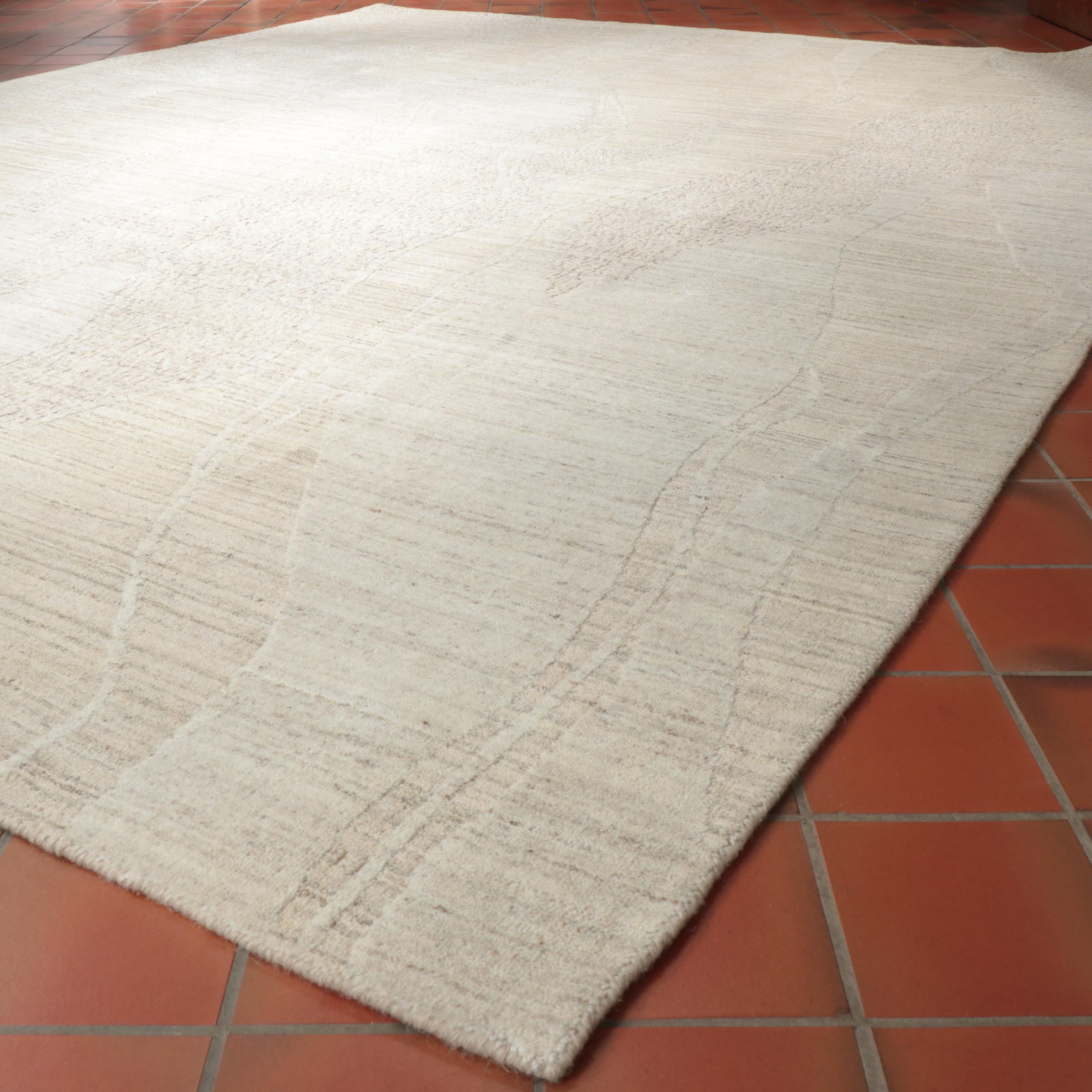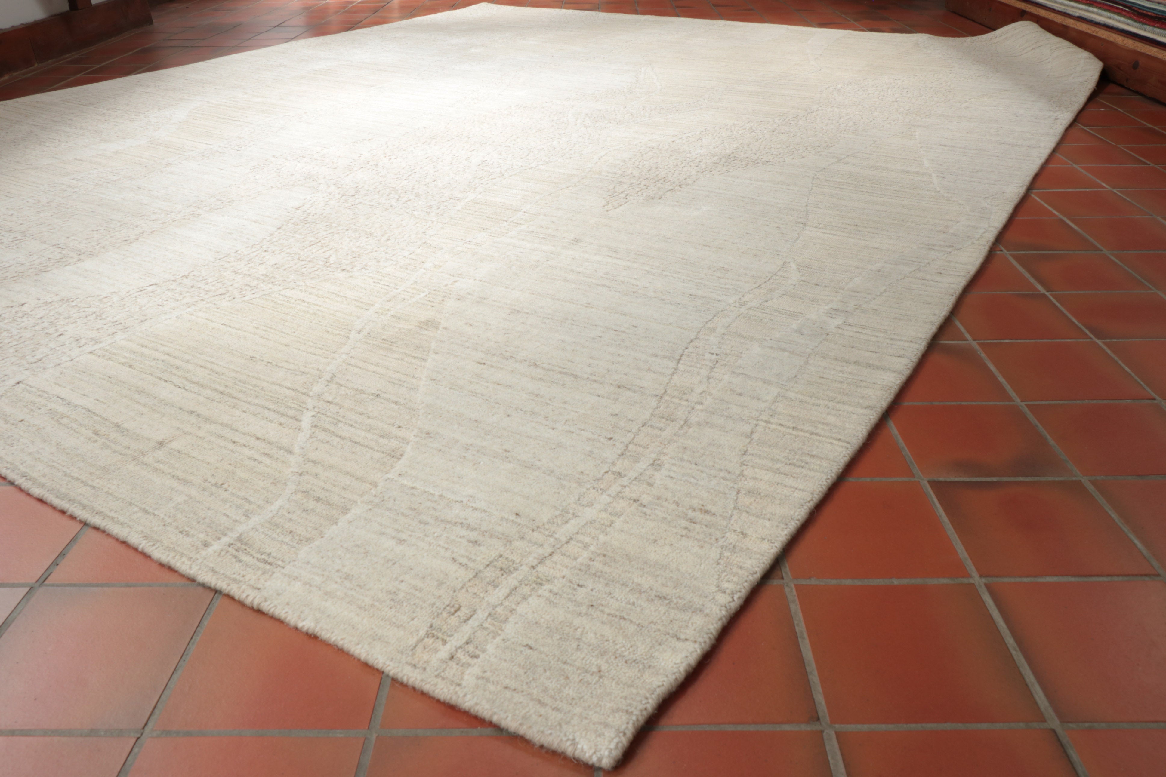 I was looking through new products and came across the Indian Dune Collection, which caught my eye. What's interesting about this collection is that it's machine-loomed, unlike the other hand-knotted rugs in the store. Despite this, I was assured that the Dune Collection's quality and design are among the best in this price range. I was particularly drawn to the wave-inspired design, which reflects the adventurous spirit of the Sahara. The rugs are made from a blend of wool and viscose, offering subtle tones and bold design to any modern space. I have incorporated the wind-swept dunes of the desert into my 'modern rug collection', ensuring you can buy one of these beautiful rugs.