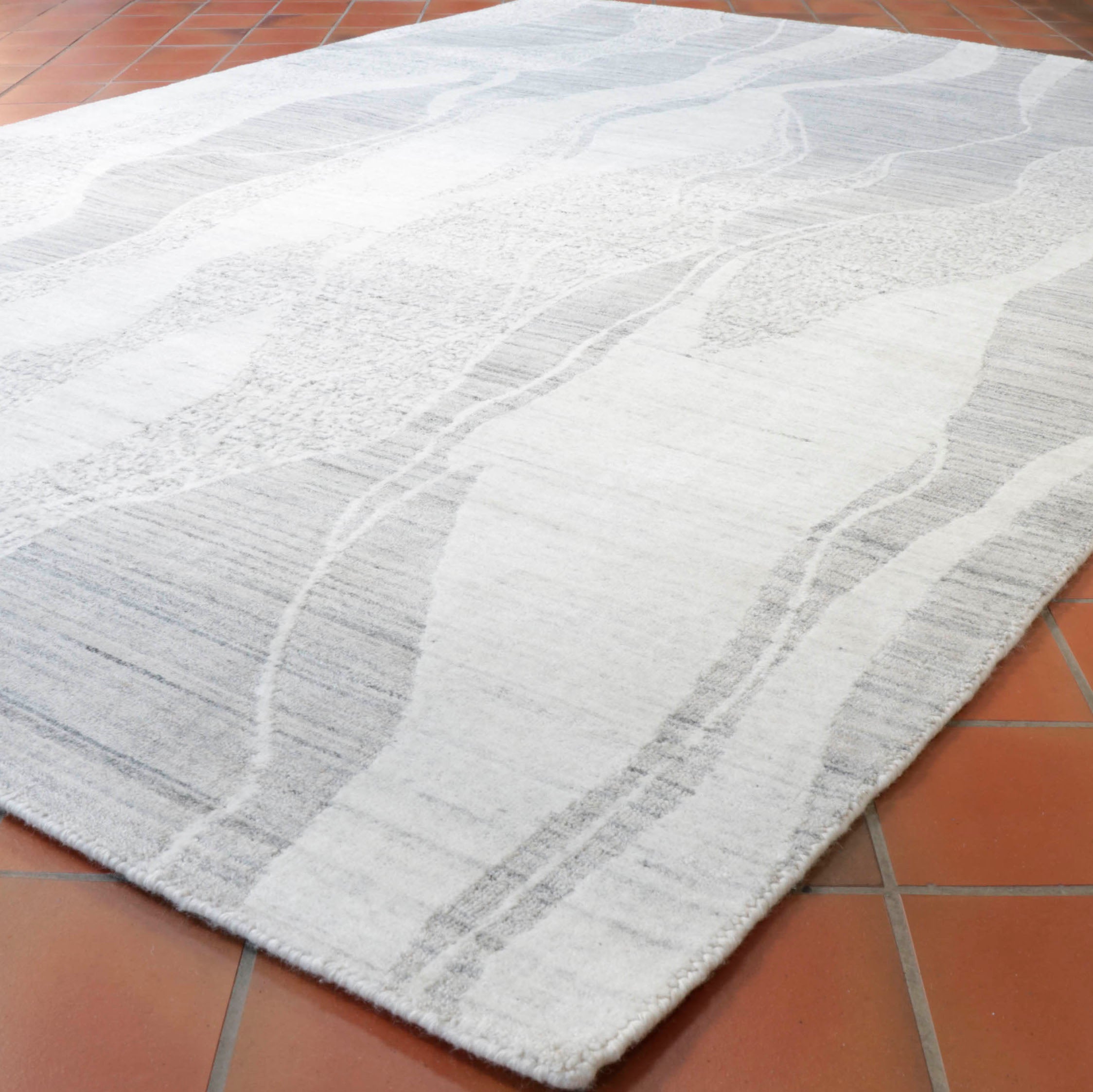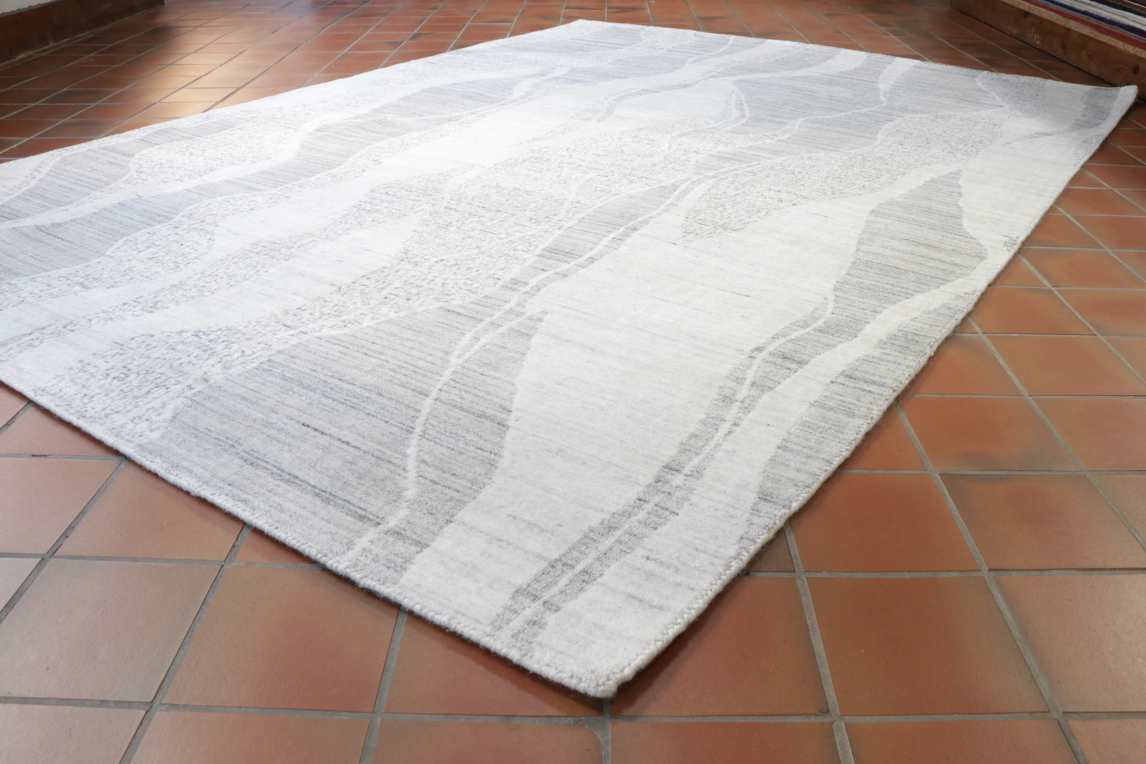 Add a touch of luxury to your space with our Dune modern rug. Soft curves and a plush wool-and-viscose pile create a truly luxurious feel. The soft grey and ivory colour scheme complements the modern design, making it a perfect addition to any room. This is a truly stunning carpet that would complete any modern room.  I was looking through new products and came across the Dune Collection, which caught my eye. What's interesting about this collection is that it's machine-loomed, unlike the other hand-knotted rugs in the store. Despite this, I was assured that the quality and design of...