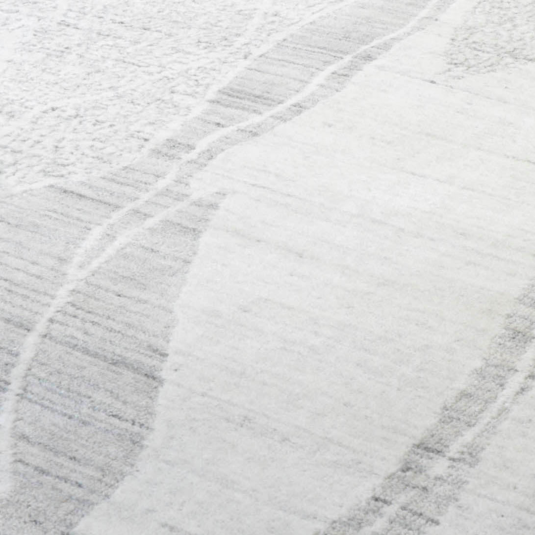 Add a touch of luxury to your space with our Dune modern rug. Soft curves and a plush wool-and-viscose pile create a truly luxurious feel. The soft grey and ivory colour scheme complements the modern design, making it a perfect addition to any room. This is a truly stunning carpet that would complete any modern room.
