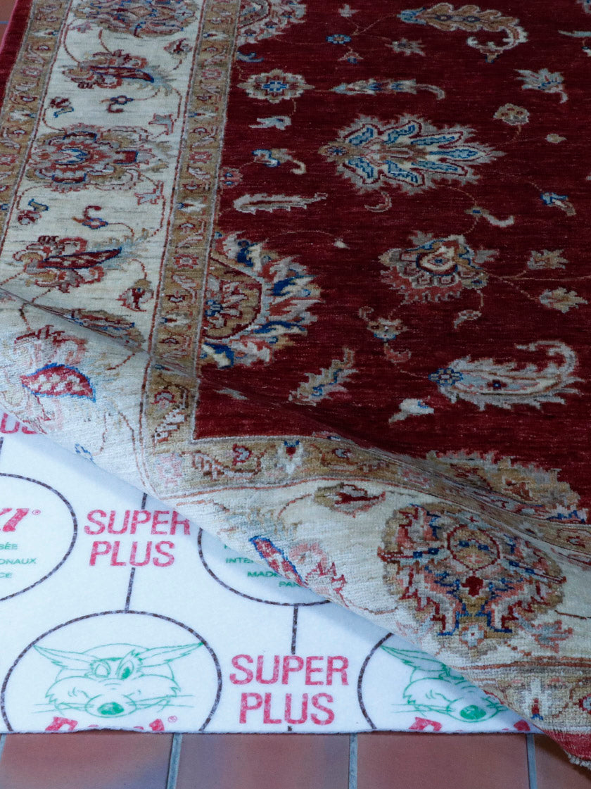 Foxi® is a leading brand of antislip underlay specifically designed for our handmade rugs. It is suitable for all types of floors: carpet, parquet, marble, tiles, linoleum, plastic or laminated flooring. The underlay is not designed for uneven flooring; a felt underlay would be required. Foxi® will hold carpets firmly in place, preventing creases and waves. It will add cushioning to the rug, although this is not its primary purpose. The underlay is supplied in standard widths and cut to the approximate sizes indicated.