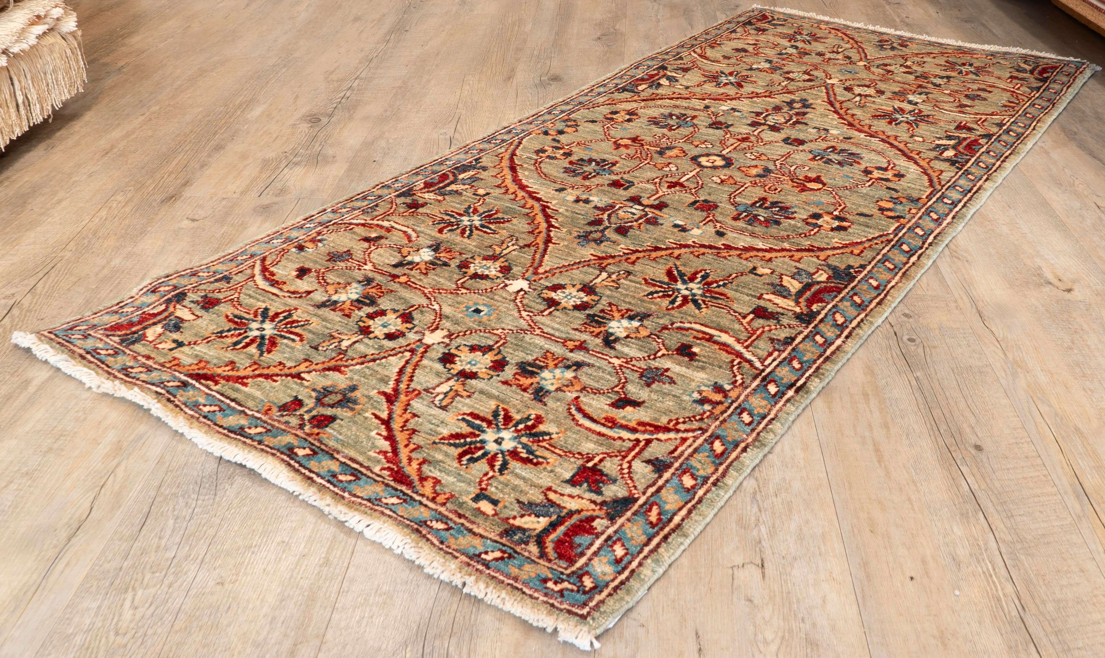 Enhance your living space with this practical handmade Afghan Choeb Rang short runner featuring a classic design. This hardwearing piece has a natural colour background with highlights in apricot, red, light blue and cream. Elevate your décor with a piece that combines artistic uniqueness and enduring craftsmanship, moving beyond the ordinary to bring a sophisticated touch to your home.