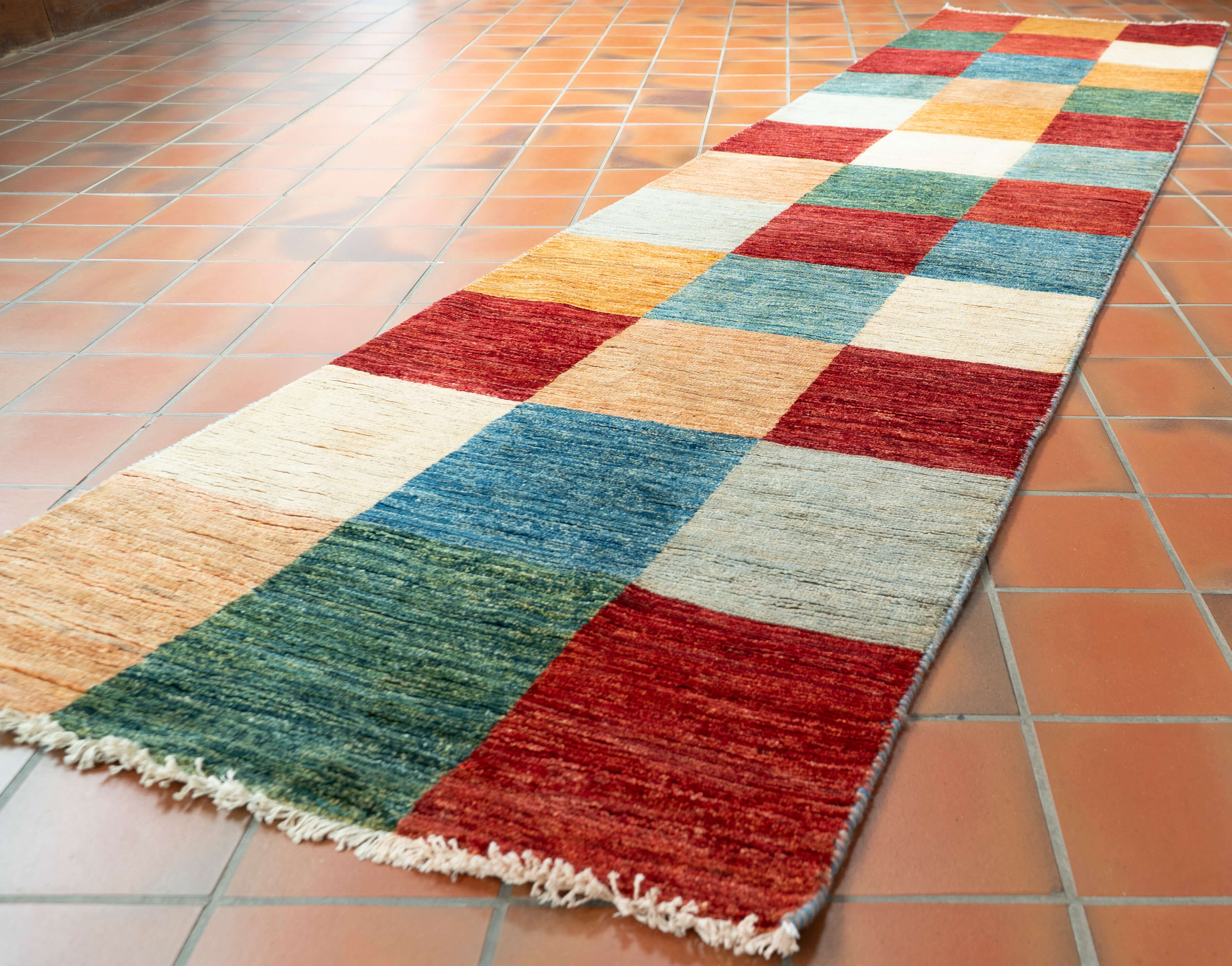 Expertly crafted by skilled artisan weavers in northwest Afghanistan, this Loribaft runner is a unique, contemporary piece that adds colour to any space. Made with handspun wool dyed with vegetable dyes, it is practical and hardwearing, making it a beautiful, durable addition to your home.