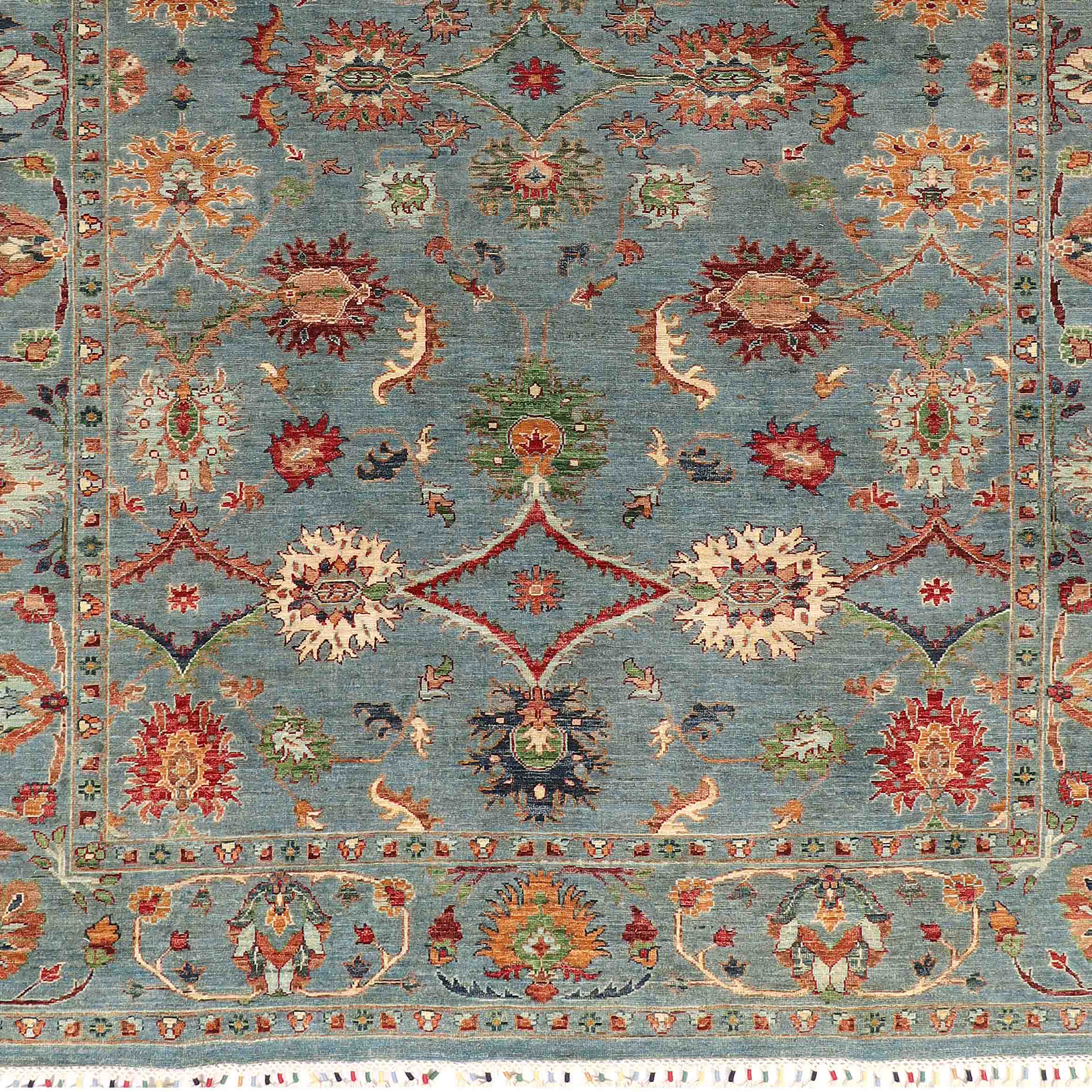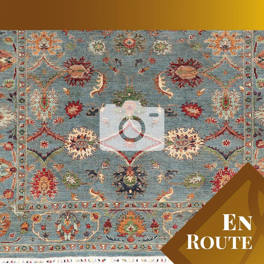 You can buy this handmade carpet before it arrives in our Tewkesbury showroom. The rug has not yet been received into our stock at Tewkesbury and has yet to be photographed at the showroom. The images may not be as good as our normal images, but they are photographs of the finished rug. Once the carpet has been transferred from our warehouse, we will rephotograph it.