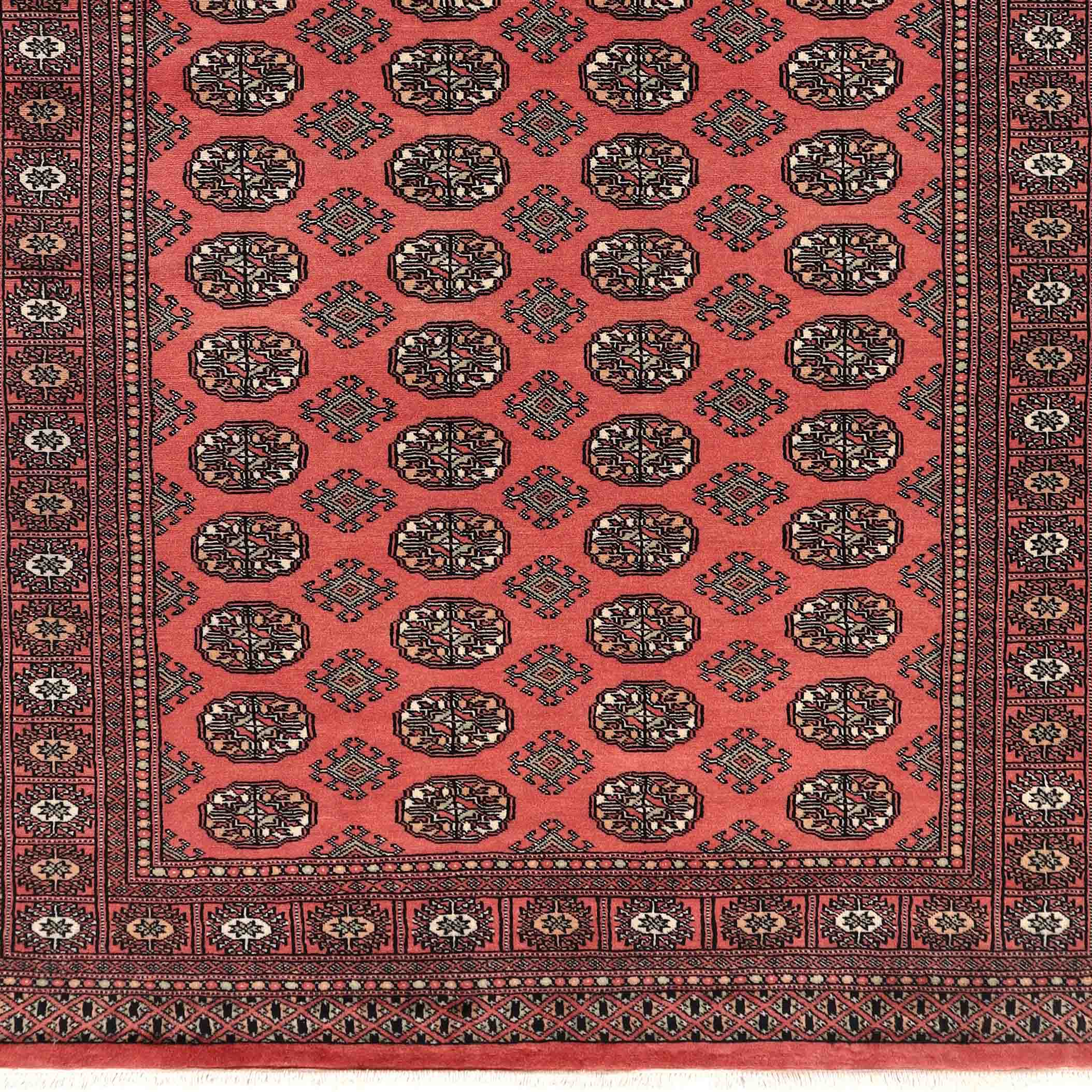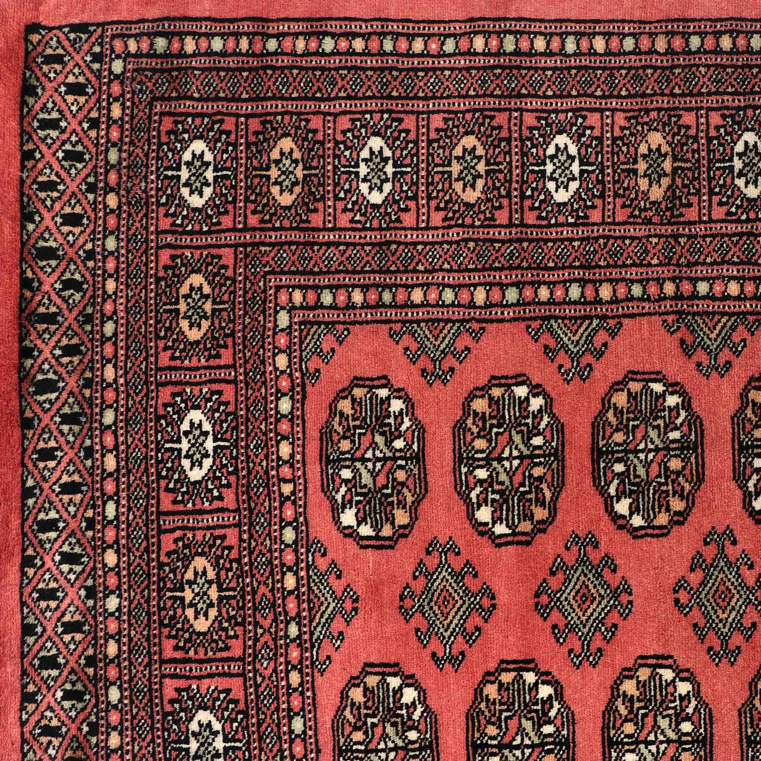 This Pakistan Bokhara rug is finely knotted in a traditional design using lovely, soft, silky wool. The Bokhara rugs are always made with a wool pile, but unfortunately, some people try to pass them off as silk. Handmade Bokhara rugs are incredibly good value.