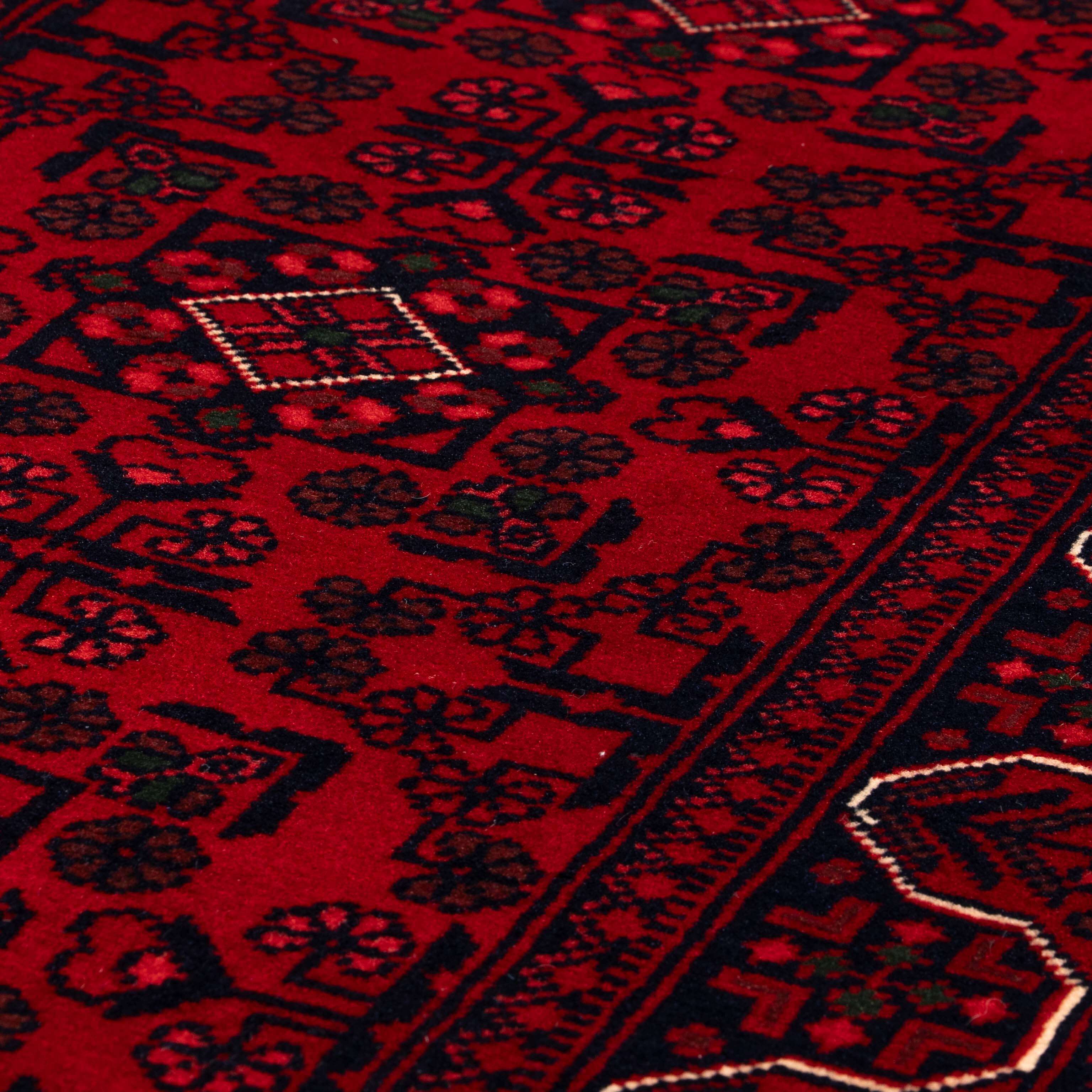 Afghan Kunduz and Afghan Khal Mohammadi rugs may occasionally look quite similar. However, the Kunduz are generally finer-knotted and have more detail in the pattern. Both of these rugs use the same madder plant to create the vegetable-dyed wool that is so hard-wearing.