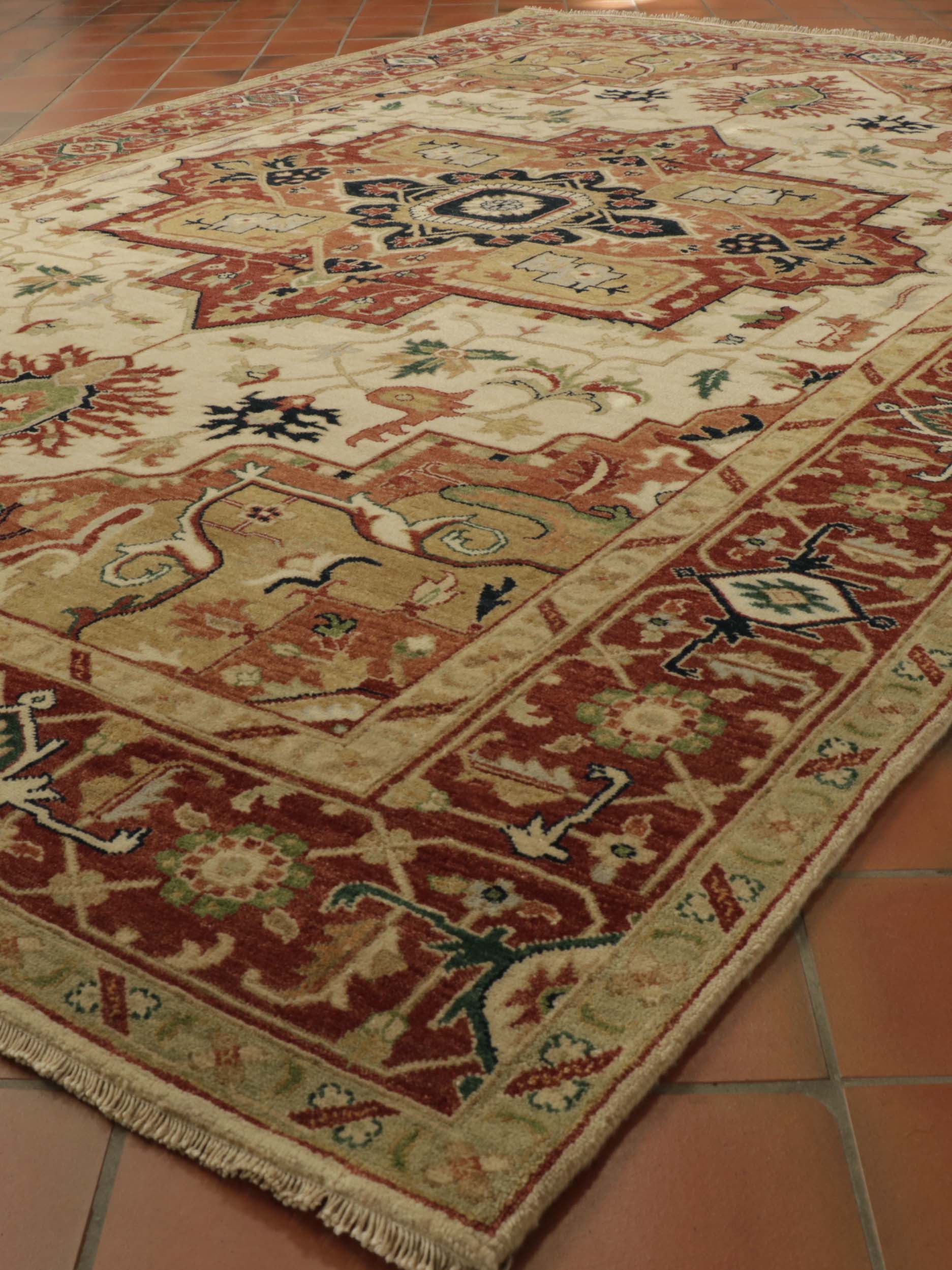 The designs featured in Heriz carpets are mainly geometric, bold and inviting patterns that include a large medallion centralised within. As with most weavers of high quality, the designs are passed down through generations and are often woven from memory.