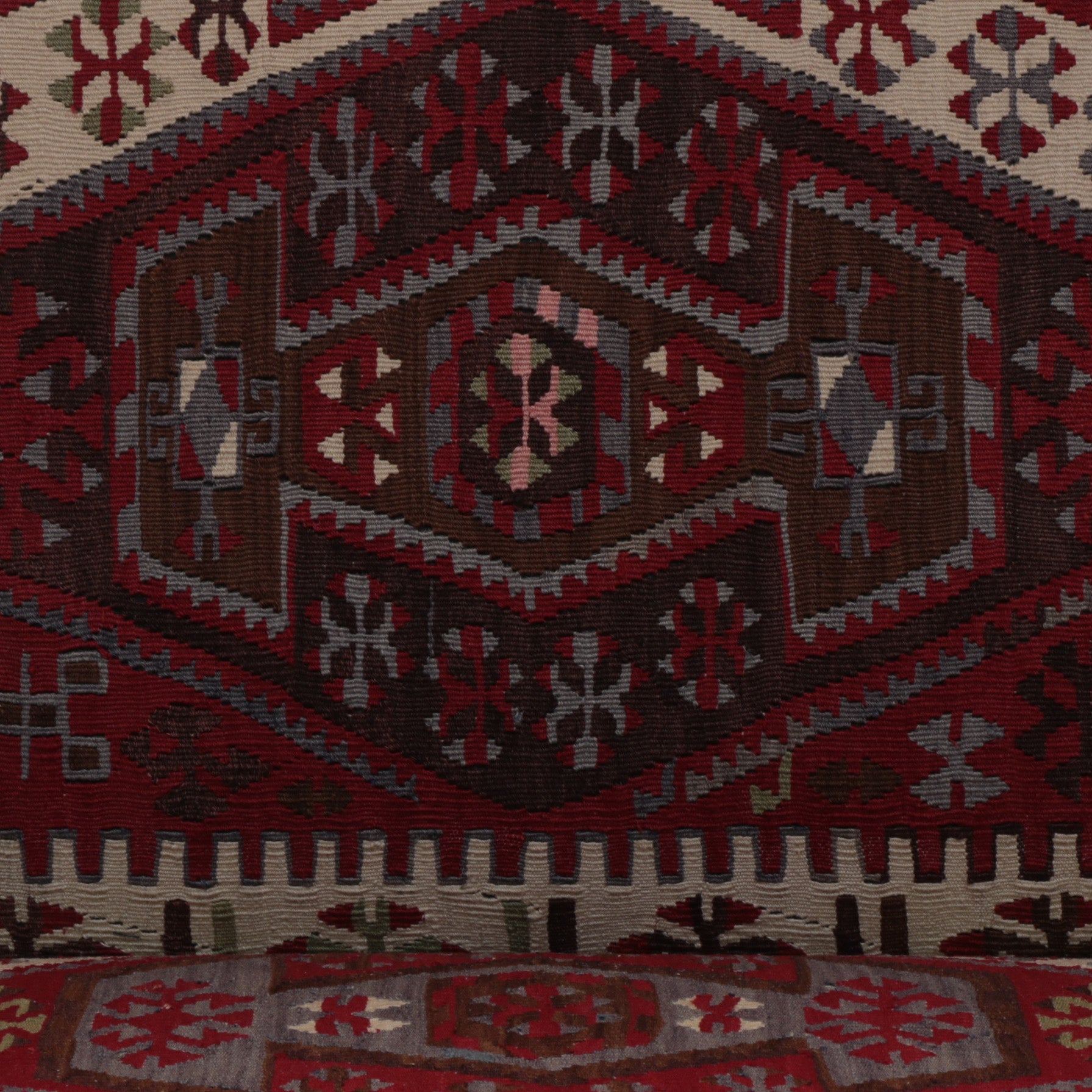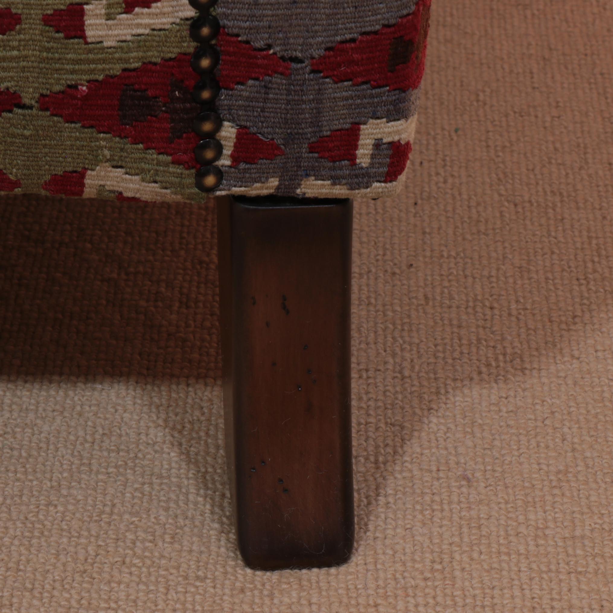 Before the Kilim is fitted to the sofa, it is bonded to a secondary fabric to ensure the open areas do not expose the fillings and to make it more secure.