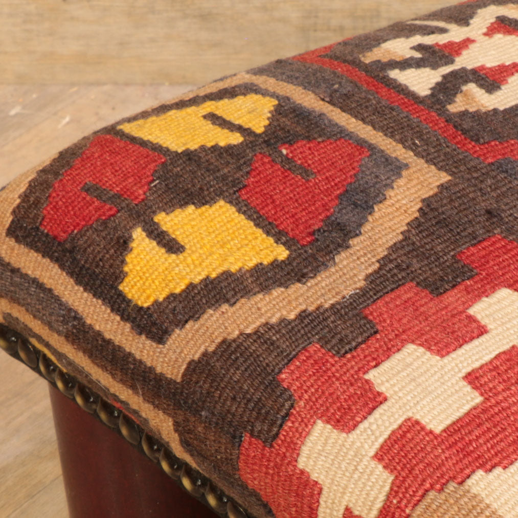 This charming small stool is only 15cm tall and is approximately 30cm square; it is ideal for people who can't touch the floor properly when sitting. One of the other advantages is that it can easily be tucked under an existing chair or sofa if it has legs with sufficient clearance—another great addition to our increasing kilim furniture range.