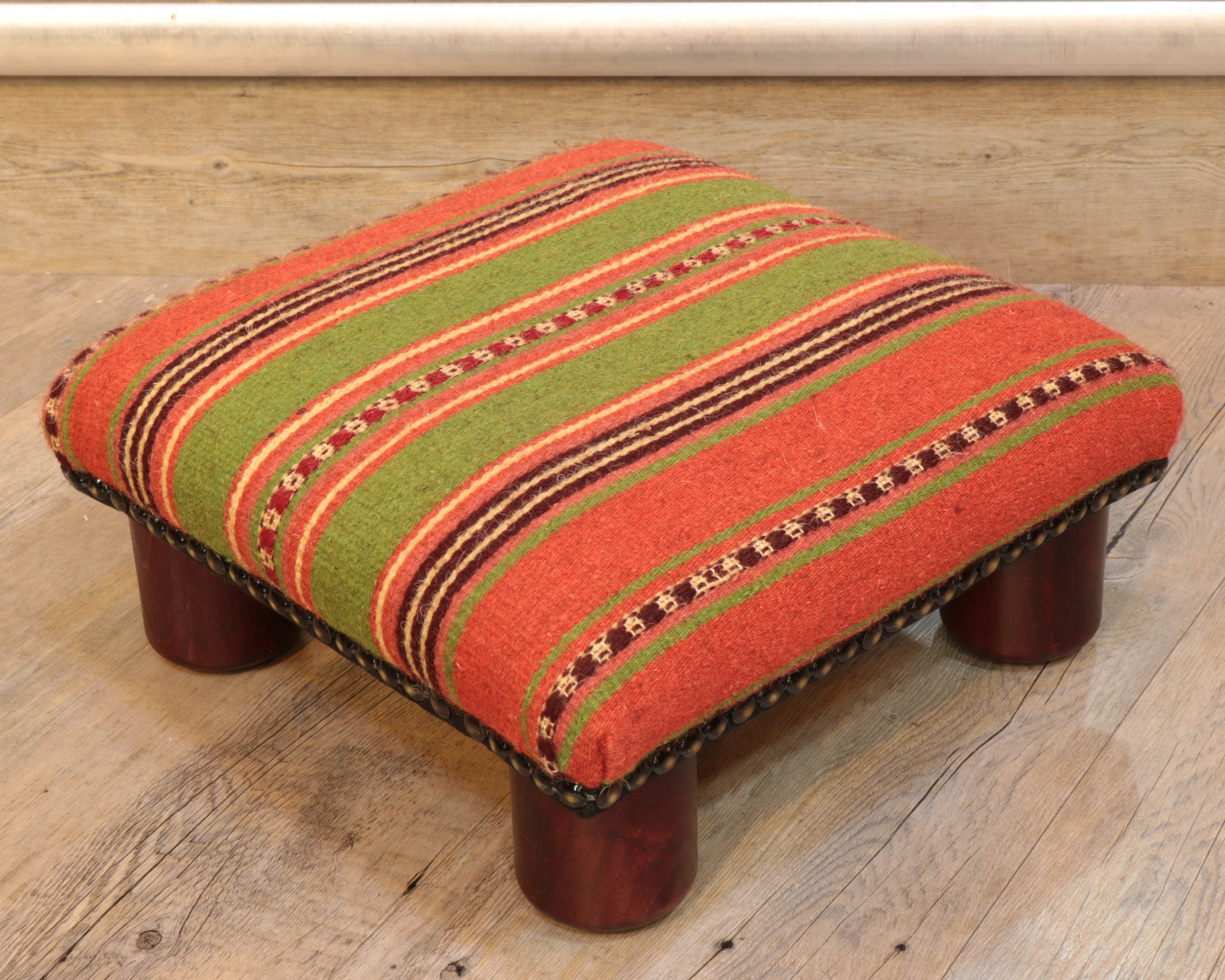 This charming small stool is only 15cm tall and is approximately 30cm square; it is ideal for people who can't touch the floor properly when sitting. One of the other advantages is that it can easily be tucked under an existing chair or sofa if it has legs with sufficient clearance—another great addition to our increasing kilim furniture range.