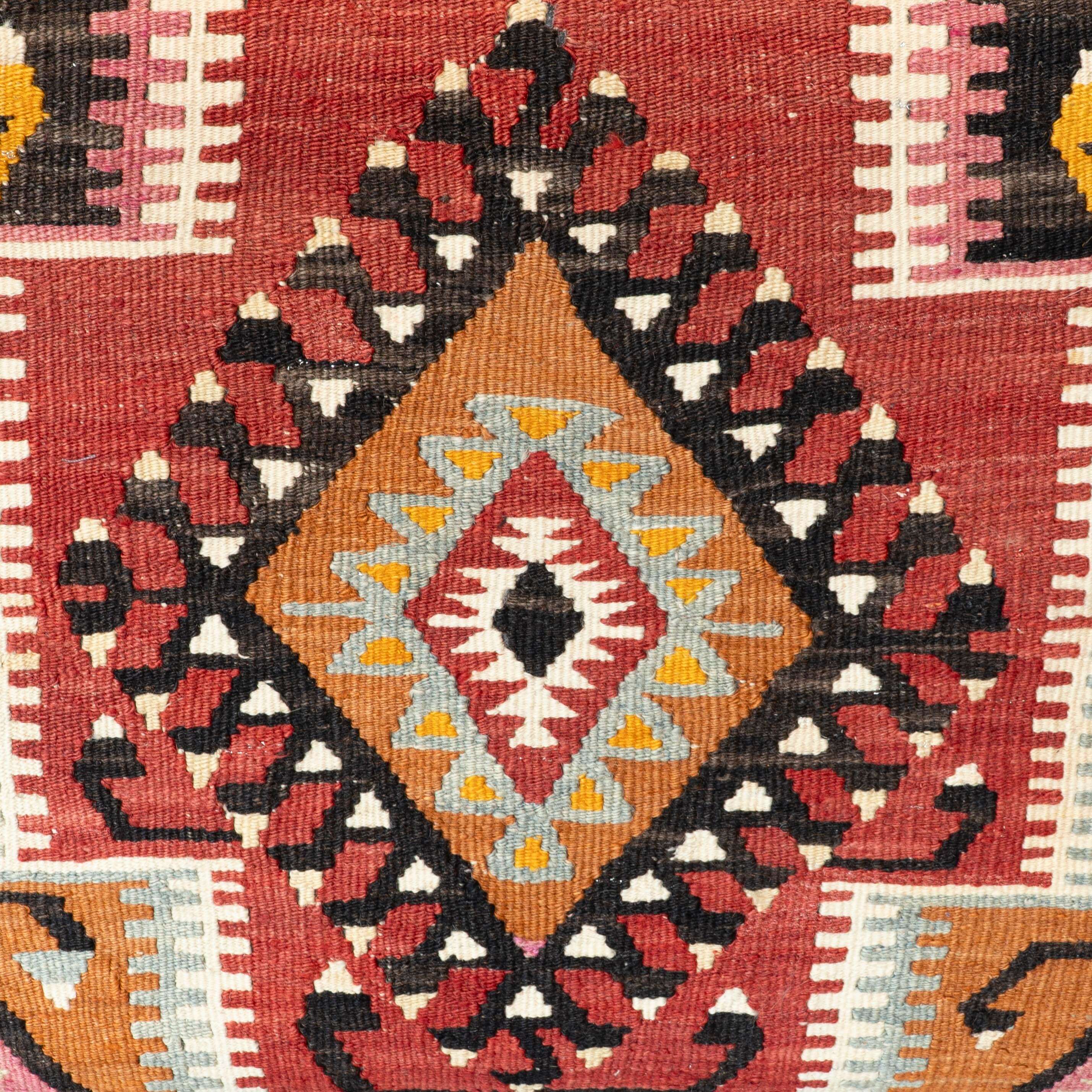 Salvaged Kilim rugs are usually used to produce these pieces—particularly old Turkish kilim, which often has lovely motifs with meanings. Vegetable-dyed wool is a beautiful natural fibre that generally contains high levels of lanolin, making it very practical. Kelim is woven using hand-dyed wool in both the warp and the weft. The patterns produced are often identified by the region in which they are made, and the designs are passed down through generations from mother to daughter.
